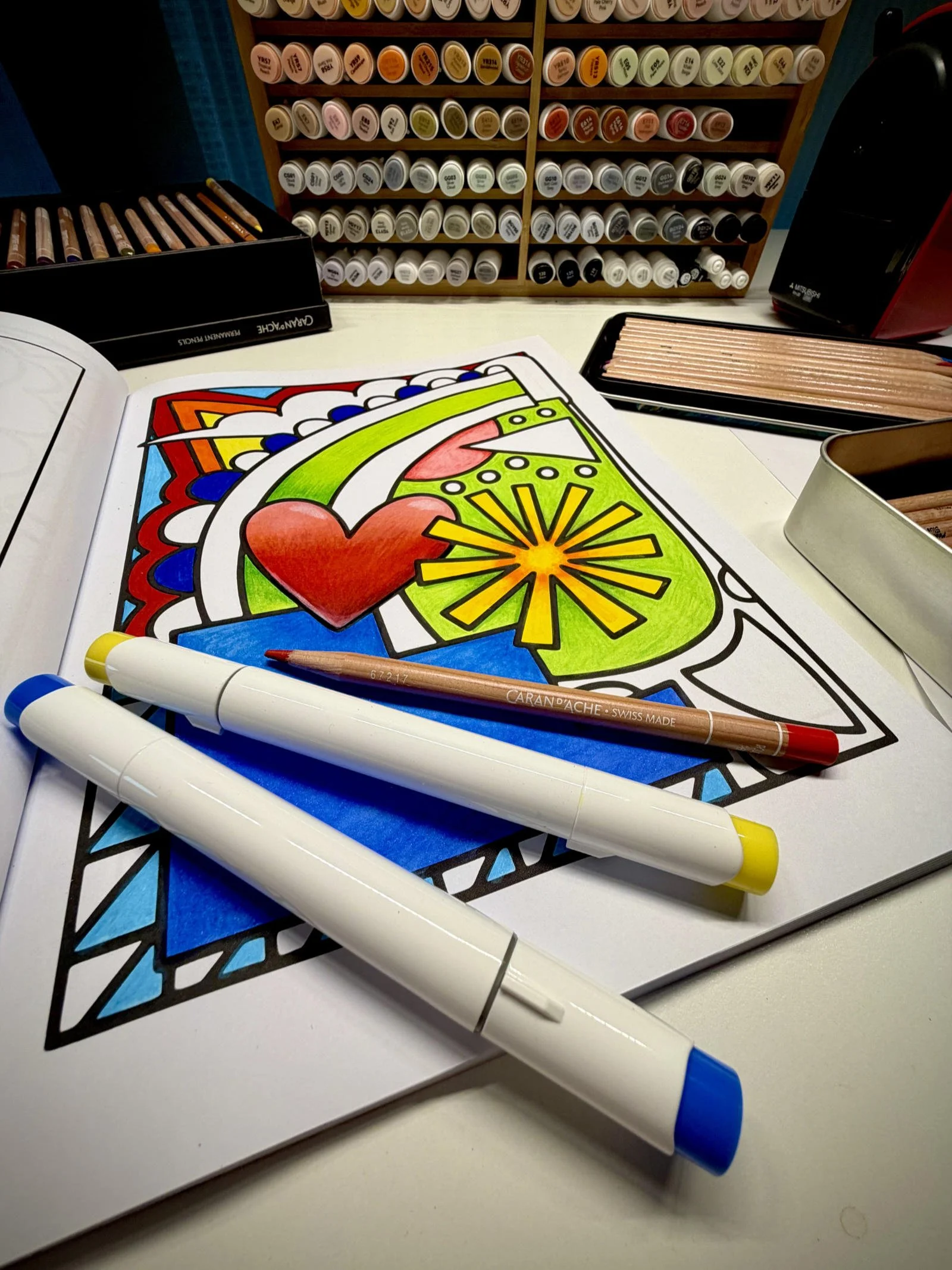 Hi, I'm Aly Indermühle, the artist behind Studio Indermühle. Color and shape have been my creative language for as long as I can remember. My work explores the intersection of intuitive mark-making and vibrant color, from large-scale public art to the intimate pages of the Playful Coloring series.
